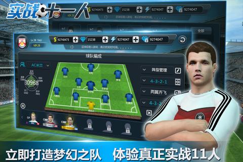 实战十一人一款立即打造梦幻之队,体验真正实战足球11人,玩家可以在游戏中体验实时语音互动,即场出必杀技,晋身世界冠军,接受全服挑战,实战十一人,打造真球迷的游戏,再掀足球风暴!