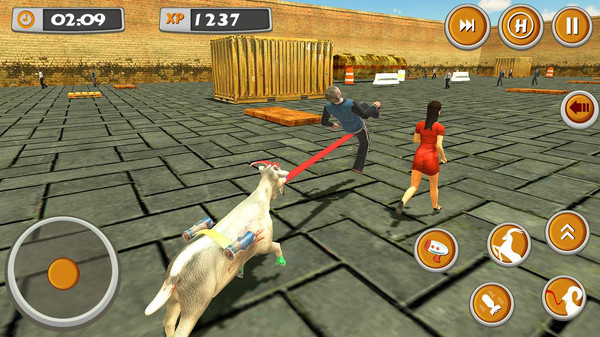 山羊横冲直撞模拟器(goat rampage simulator)是一款开放世界自由冒险游戏,扮演山羊在城市中探索,你可以袭击各种路人来制造骚乱,还能找到强大的武器来进行更快的破坏!