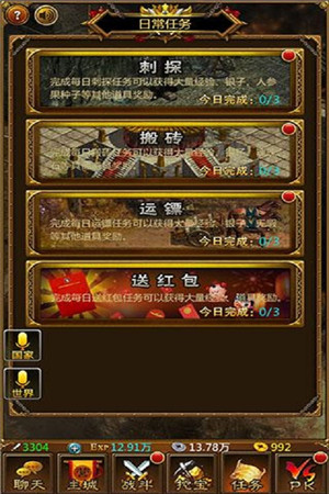 系统内挂、挑战BOSS、挖宝、PK掠夺;
