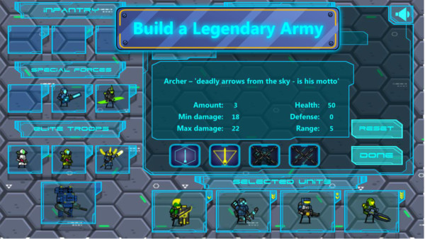 2、10种不同的士兵可以选择,剑士、狙击手、医生等每个种类都有自己的特色