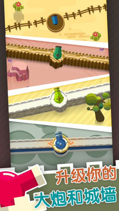 城池的城墙从刚开始的土墙,玩家可以慢慢升级,尽量前面几个关卡将城墙升到砖块结构