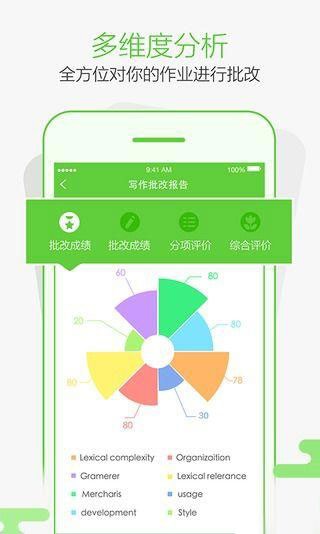 根据不同考试的评分标准,有针对性的生成多个维度的批改分析报告,老师可以实时介入学生的英语练习,加入更多的反馈信息和批改建议。