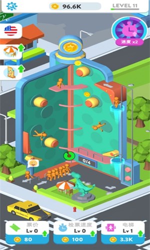3、游戏中还能购买各种各样的装备,升级自己的游乐设施,变得更高更大。