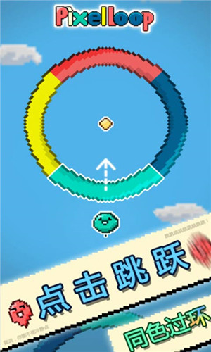 像素环安卓版游戏的玩法非常有趣,玩家需要点击屏幕来让主角向上跳跃,在空中的时候回出现一些四色的旋转像素环,玩家要让自己控制的角色通过和角色相同的颜色部分。