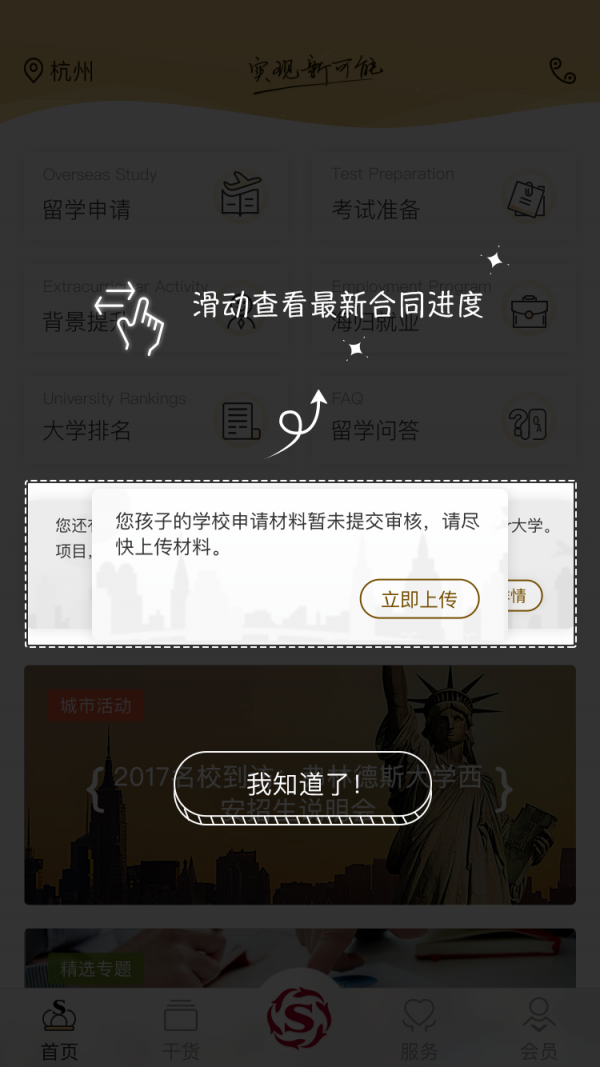 出国全程通app是一款十分好用的留学工具,用户通过出国全程通app可以随时在线上传留学申请材料,实时掌握留学申请进度,还可以获取全面的留学干货,是你留学的好帮手。