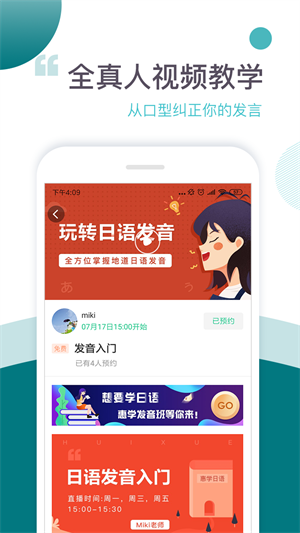 app是一款日语入门在线学习软件,app提供完整的五十音图教学,还有真人视频知道发音口型,学习更准确。