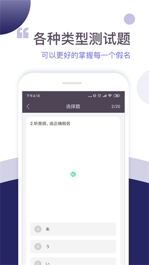 假名对应、听音辨析、听音默写,app多种题型帮助你巩固基础。