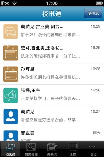 河南校讯通手机客户端是一款手机校讯通软件,家长用户通过它可以及时与老师交流,随时随地掌握孩子在校状态。