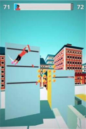 在游戏中你将扮演主人公在空中翻转,收集金币并顺利落到下一个横杠,不停地前进,直到你抵达终点。游戏中更有许多角色皮肤和摩托车皮肤等着你来收集。