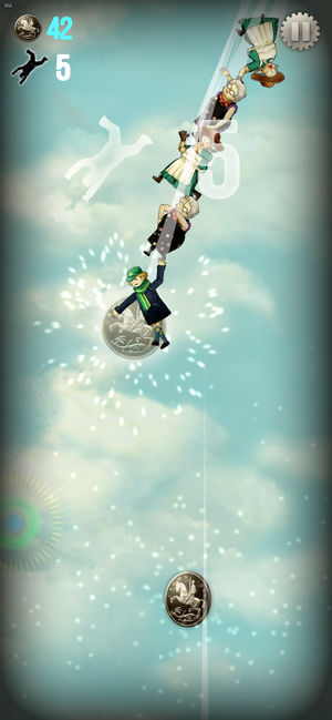 2、游戏就是在空中,有一只张大嘴的人,不停的有人冲进他的嘴中,在这个过程中,连接的人越多,分数越高。