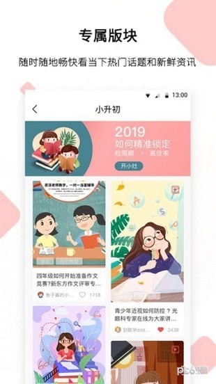 家长关心的问题如孩子健康、亲子沟通、小升初政策等在这一栏目均有海量优质内容提供,让你成为圈内的教育信息小灵通。