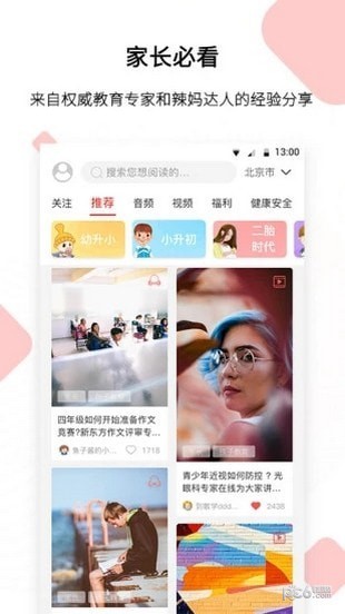 通过家长所添加的孩子信息及地理位置进行内容推荐上的智能匹配,个人定制化的首页能让每个家长看到自己当下关心的话题。