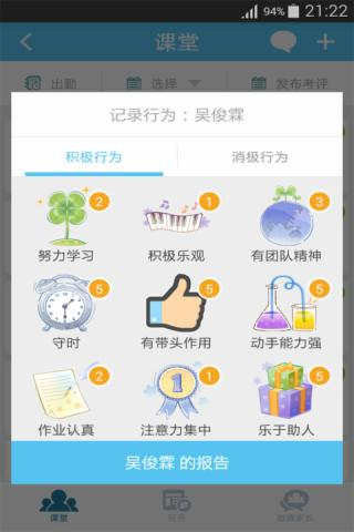 【孩子报告】孩子在学校的每一个闪光点都会由老师记录,并生成综合素质报告。家长可以及时了解孩子的特长和成长学习过程