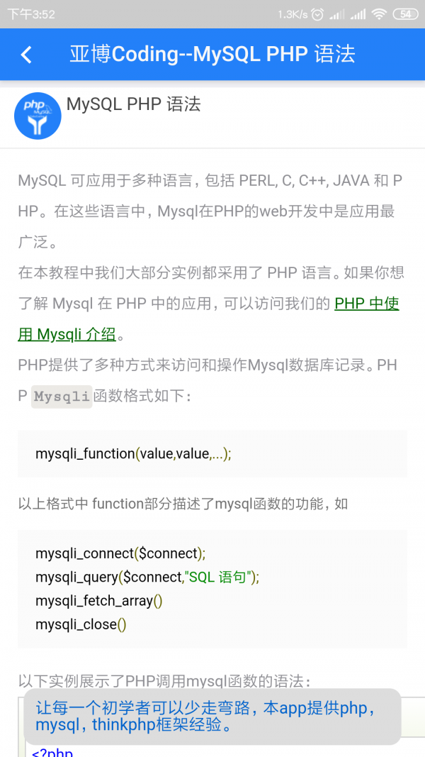 1、提供PHP、Mysql、已经Thinkphp框架知识,许多知识点都是开发者在开发实践中所遇到的问题摘录出来供学习者参考。