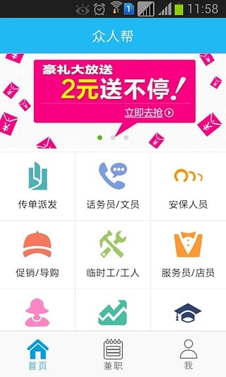 众人帮力争成为最适合大学生的赚钱软件。你可以选择线下兼职,也可以选择躺着赚钱! 众人帮每天都有海量好玩有趣的内容、劲爆的优惠活动,只要小手一点就能轻松赚钱。