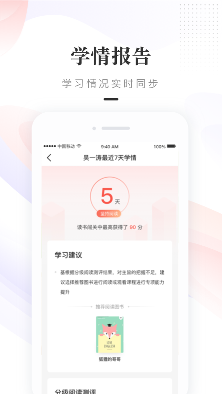 1.学情报告:帮助家长检测学生日常阅读效果,及时改进阅读方法。