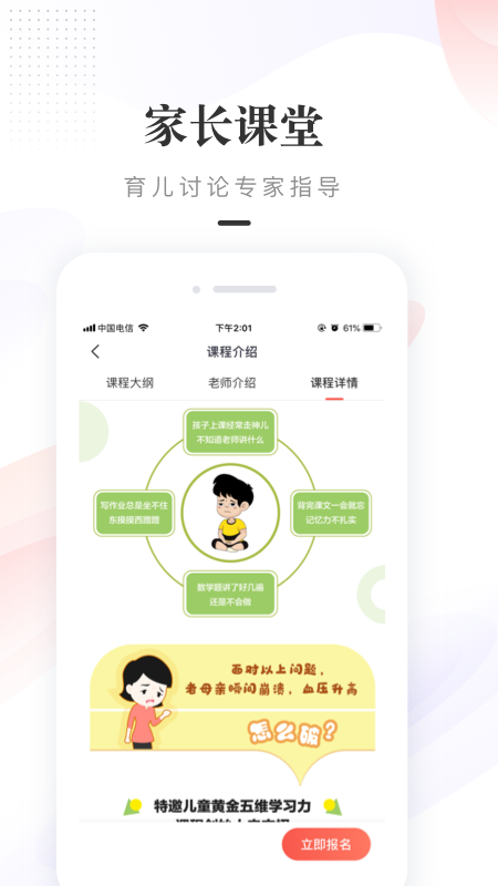 app为家长提供新鲜、全面的教育资讯。包括优质图书推荐,阅读方法指导、家庭教育解读等海量信息。