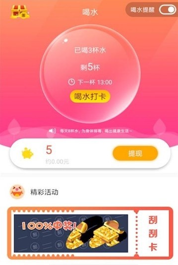【喝水打卡得金币】