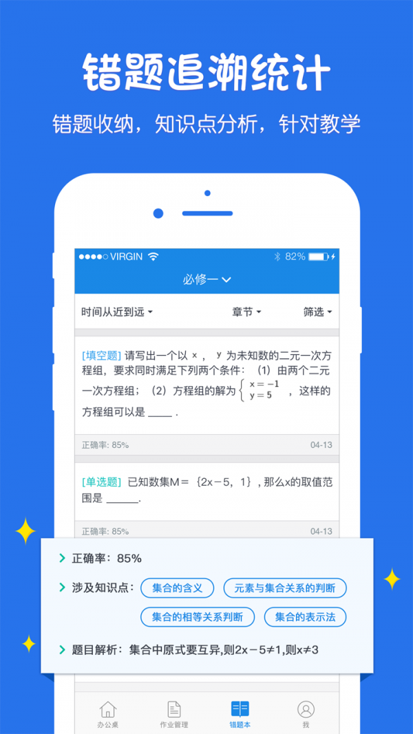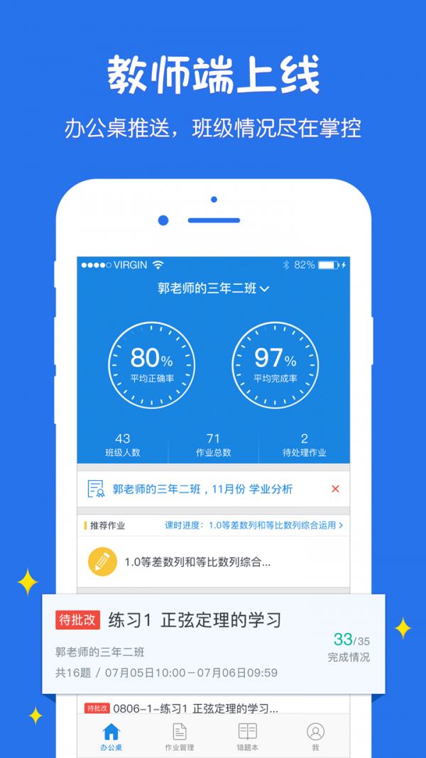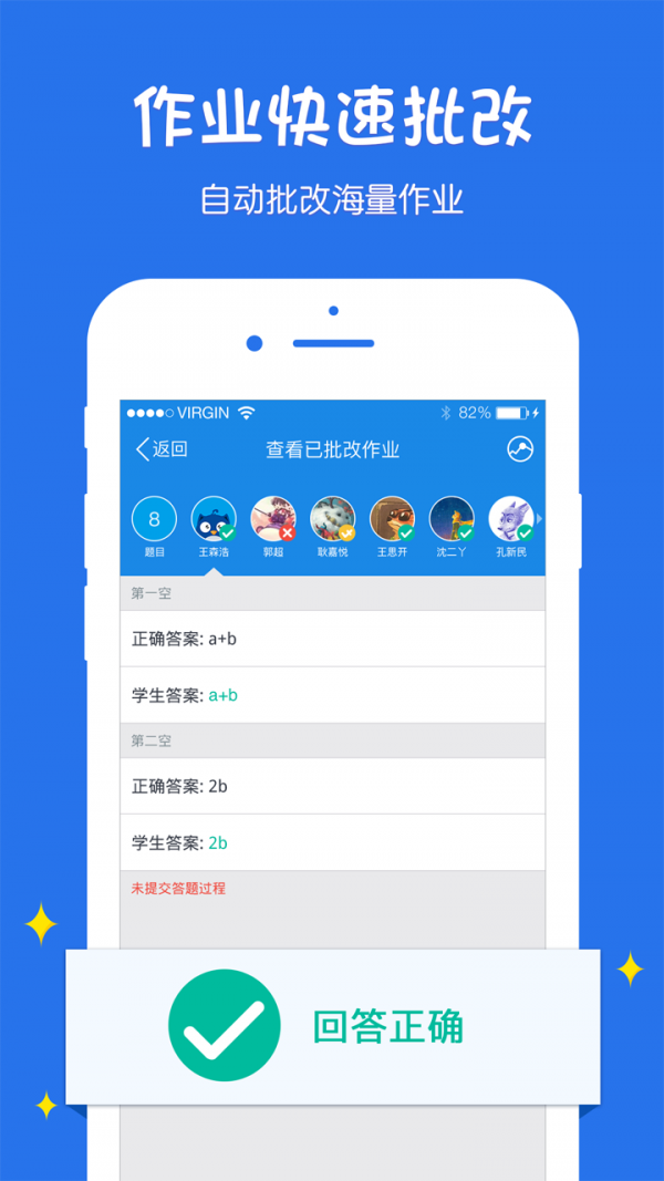 填空、选择、判断自动批改,自动生成作业统计报告!
