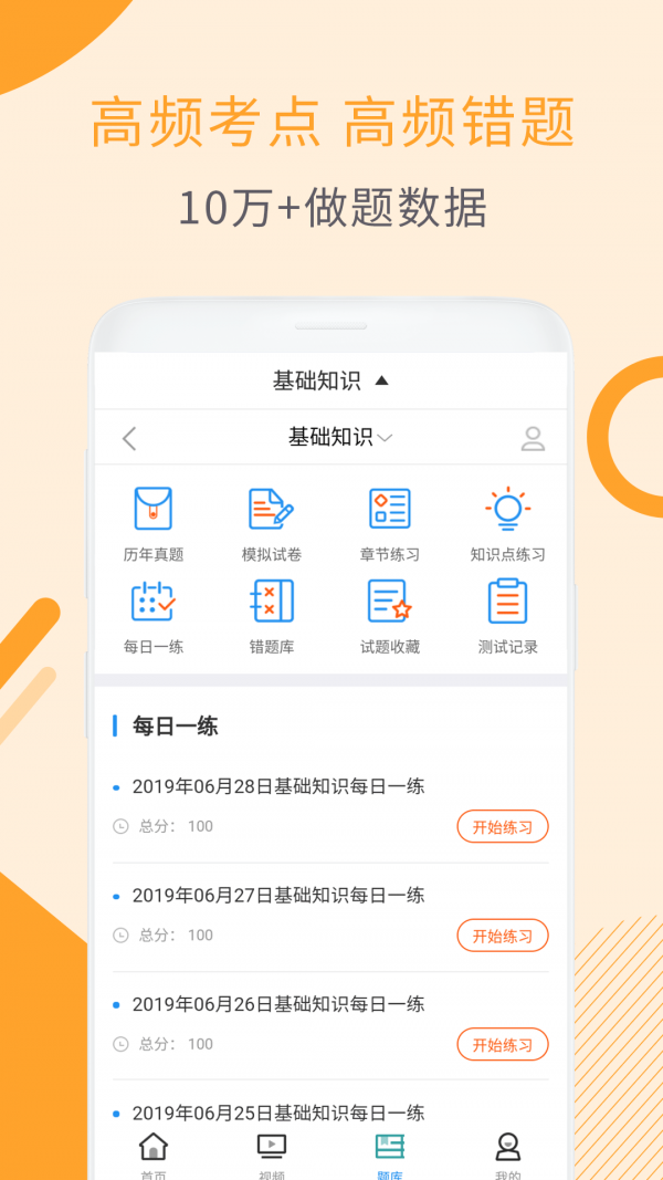 智能题库有每日一练、历年真题、模拟试题、高频考点、知识点练习等海量试题;10万+的题库数据,随时随地打开手机刷题