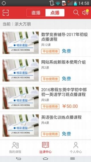 1)移动选课:随时随地可选课,优质课程随你挑。