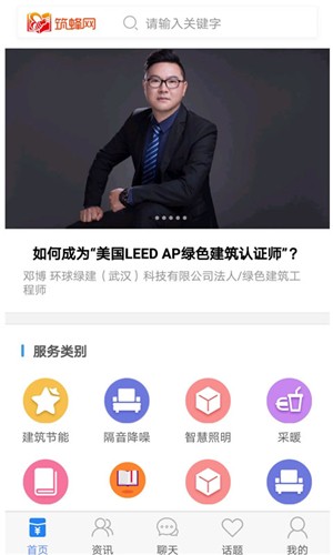 app主要是为绿色建筑行业提供在线社交、分享及产品的平台,各会员可以通过app实现会员之间在线交流、提供服务及产品销售,可以方便的通过平台组织内部活动和解决生活中的问题。