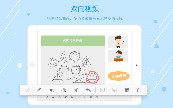 米猪云课通过互联网技术搭建直播课堂,让每一个师生都可以享受到同等的互联网教育,无论您在哪儿,随时随地都可以加入课堂开始学习,双向互动白板技术,让每一个学生都受到老师的关注。