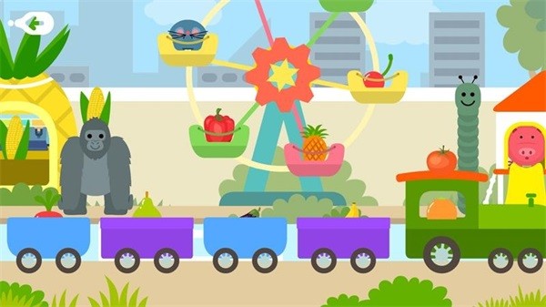 ★走进动物园,慢慢的向左或向右滑动屏幕,你会看到商店、游 乐园、动物玩具、小汽车、货车、火车、小船、小火车等及各种动物。