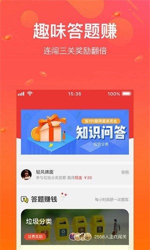 app提供好运刮刮卡,张张有惊喜,app最近更新新增知识闯关问答,答题成功更有现金奖励拿,率先推出垃圾分类有奖答题,再也不用担心扔错垃圾啦。刮得多中得多,答得对中的多,中奖惊喜可随时提现喔。
