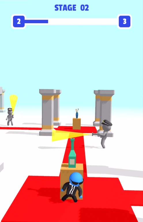 Carry out it是一款非常好玩的休闲益智类游戏,游戏的画面采用了简单的三维几何体组成,玩家在游戏中将扮演一位盗贼,你需要到处偷东西,不要被发现哦。