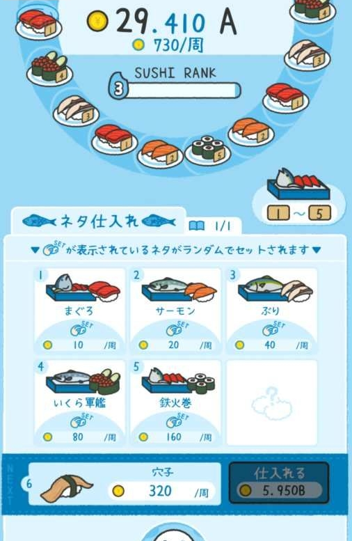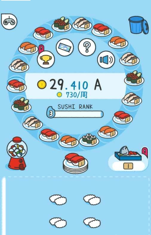 1、通过销售自己合成的寿司赚取更多的钱并解锁更多种类的寿司。