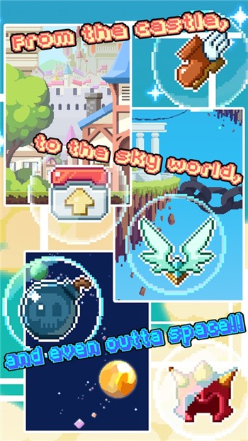 跃至苍穹是一款像素风格的反应动作类游戏,游戏中玩家将扮演一名勇士,拯救被魔王Block.K抓走的公主。游戏玩法简单,但十分考验玩家的反应能力,喜欢挑战的玩家不妨下载一试!