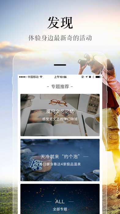 一种是一款吃喝玩乐一体化的生活功能软件,帮助用户更好的享受生活,发现被自己忽视的各种美食、美景、美人;一种美好的生活体验,一次美妙的旅行经历,给你生活中的种种新滋味!