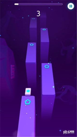 一款音乐节奏类的游戏,游戏中你需要跟着节奏不断翻转跳跃,来看看你能得多少分吧