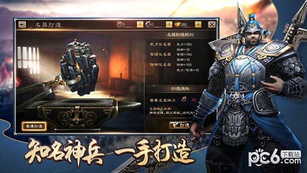 方天画戟、青龙郾月刀、青杠剑、丈八蛇矛,多种经典神兵武器随机打造,想要亲手做出神兵,不仅要实力还要运气!