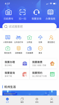 杭州办事服务手机版是一款很好用的杭州移动办事手机应用,实现了各类事务的移动互联网办理,让各位杭州市民无需出门或是最多跑一次就能搞定办事。杭州办事服务手机版为各位杭州市民带来非常全面的办事服务,赶紧下载注册使用吧。