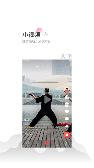 太极功夫是以太极拳为中心主题,为用户创建一个能在线学习太极、在线与拳友沟通交流为基础的运动交友平台。我们与时俱进以互联网思维来传承、来实现太极的太极阴阳之理念,用意念统领全身,通过入静放松、以意导气、以气催形的反复习练,以进入妙手一运一太极,太极一运化乌有的境界,达到修身养性、陶冶情操、强身健体、益寿延年的目的。