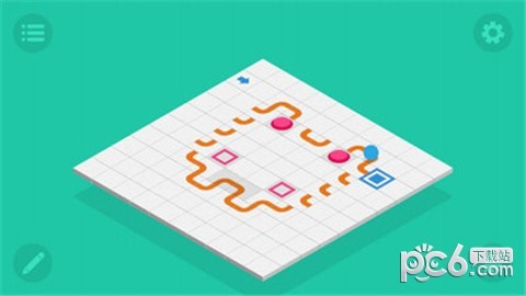 《自定义迷宫》是一款设计链锁机关的游戏。游戏分成两种模式,关卡和自设计。在全部60个关卡中,玩家要把一个或多个活蹦乱跳的蓝色小球送到目的地,即蓝白相间的方块所在的位置。为了让原本直线滚动的小球乖乖听话,玩家会用到转向、弹跳、传送门或者带按钮。