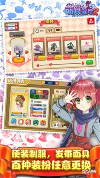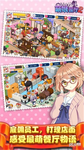 《萌娘餐厅2》是一款二次元风格的模拟经营及养成类手游,融合了大量时下流行的动漫元素。游戏中你将作为店长,在萌萌的小助理陪伴下经营你的萌娘餐厅,从烹饪料理、研发、布置小店,到雇佣员工、宣传、处理外卖订单、举行派对,所有事务均由你亲自安排.