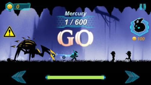 新颖的跑酷游戏,创新的美术风格,控制角色通过各种复杂而有趣的机关障碍后面还有各种外星怪兽BOSS紧追不舍,不想被怪兽叼走就赶紧往前跑吧!!