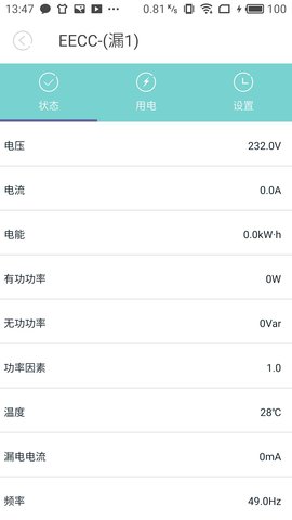通过该客户端可以查看电箱分路的实时运行参数,包括电压、电量、电功率等实时数值