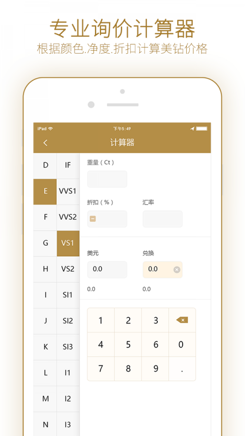 钻井App界面简单易用。根据钻石采购的习惯,开发了一种专用的价格计算工具。根据不同裸石参数输入,可快速计算出裸石价格。放弃过去多次查询和计算价格的方法。利用先进的技术手段,快速查询国际、国内证书。