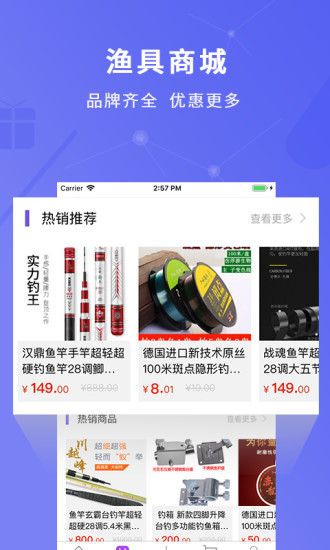 2、商城:简单的买到自己需要的渔具产品,钓鱼先要利其器!