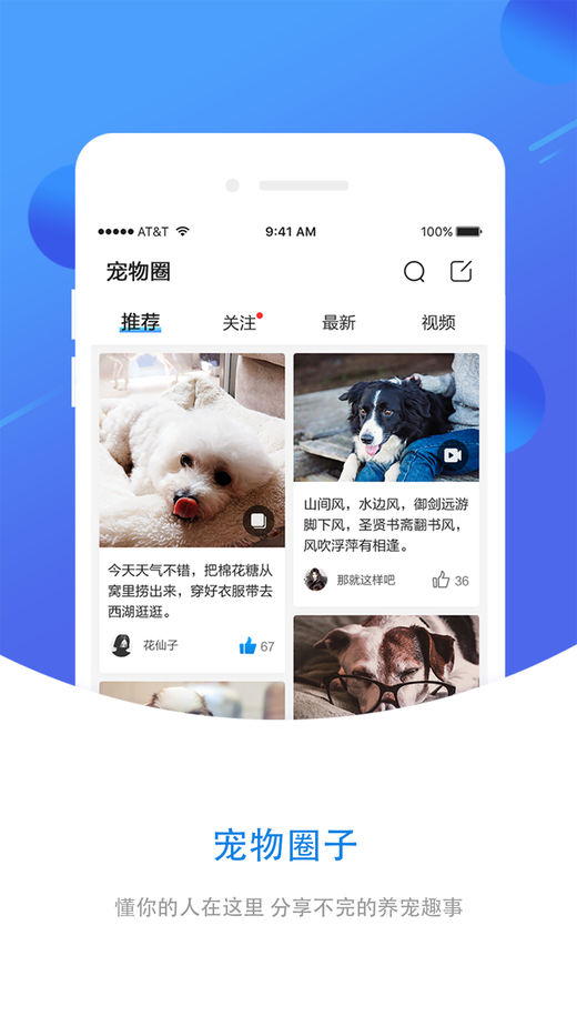 “扫一扫”、“宠物圈”、“周边活动”,最in养犬方式轻松打造,养犬你不是一个人。