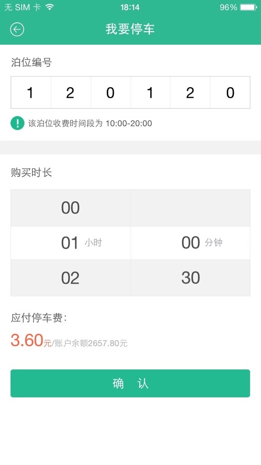 3.缴费:输入车辆所停泊位编号,成功申请停车。