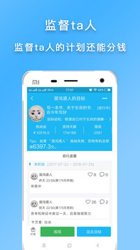 发起目标/计划:发起一个目标计划,邀请你的好友来监督你,其他用户也会加入对你目标计划的关注和监督。
