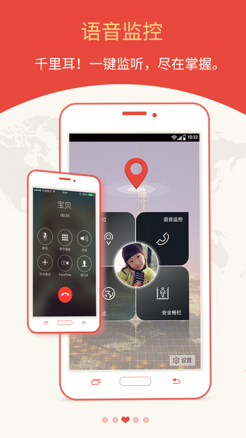 专属的安全区域划分,危险警报功能,让家人享受安全,远离危险!