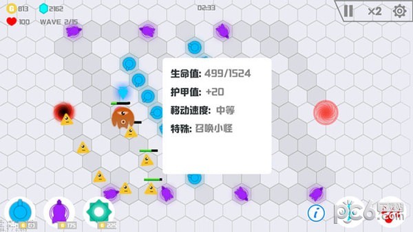 这是一款简洁但是有趣的塔防游戏,修建炮塔来改变敌人的行进路线,给炮塔镶嵌宝石来消灭你的敌人。