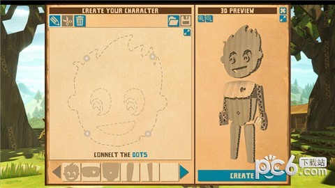 游戏中,玩家独自或与他人一起打猎、收成和挖掘资源,在风云变化中活出自己。塑造地貌、建造大型建筑和加入纸板社区。玩家可以发现并与一大群幻想生物作战,用独特的“连点造物”(Connect The Dots)系统来实现自己的创意,你可以在硬纸板上任意绘制图形来制作工具、建筑零件、武器和更多内容。