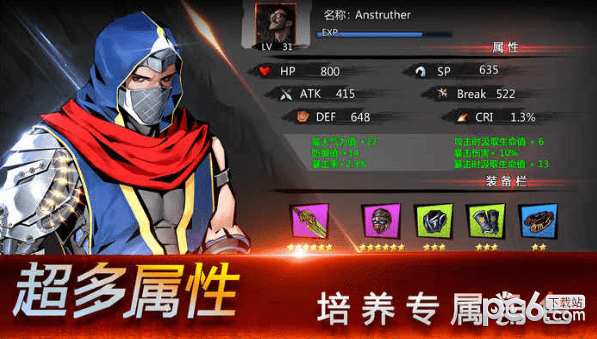 人物属性丰富:攻击、防御、暴击几率、暴击伤害、破防、血量回复等等等等,应有尽有。每次升级都有属性增长点。让你有走不同的路线。防御流?暴击流?